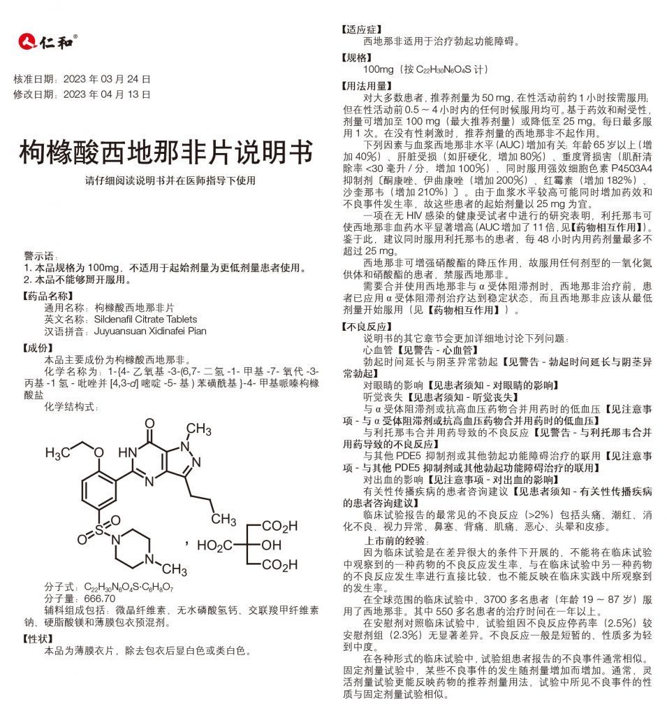 枸櫞酸西地那非片(50mg/片 *4片/板*1板/盒)