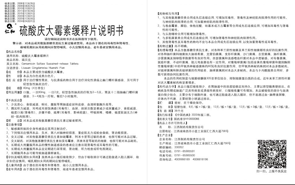 硫酸慶大霉素緩釋片(12片)