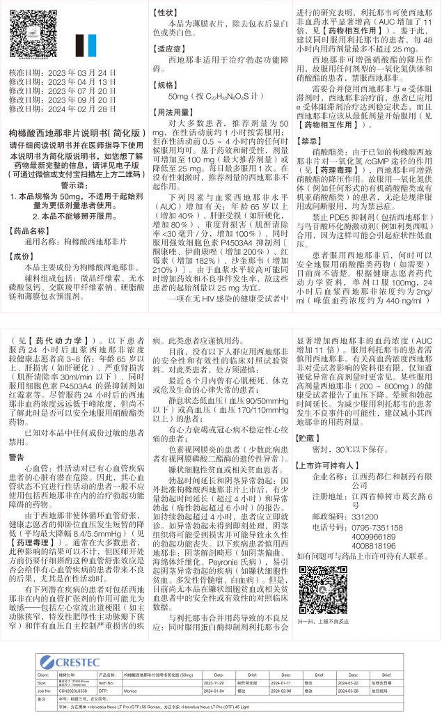 枸櫞酸西地那非片50mg/片 *2片/板*1板/盒