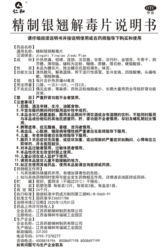 清熱散風、解表退燒,用于流行性感冒,發冷發燒,四肢酸懶,頭痛咳嗽,咽喉腫痛。