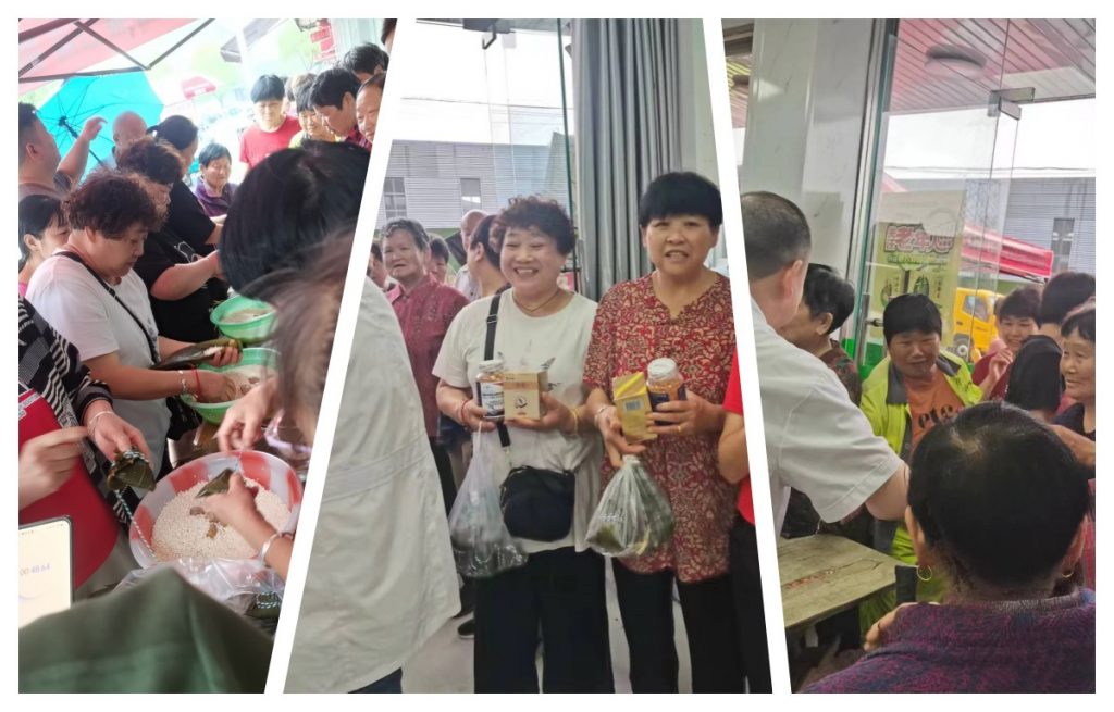 本次比賽活動時間2023年6月22日-24日每日九點,每天參與活動人數為36人,共分為6組,每小組6人,時長1小時。只要在規定時間內每個人包6個蜜餞粽子,對用時最少前3名的人員,各獎勵仁和蜂蜜一瓶;第4名至第9名各獎勵仁和碳酸鈣D3咀嚼片一盒;剩余參賽者各獎勵仁和匠心牌口服液一盒,所有包的粽子顧客都可以自行帶走。