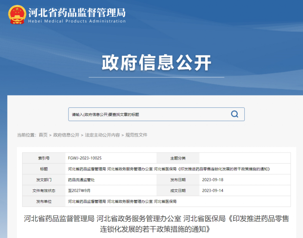 9月18日,河北省藥監(jiān)局、河北省政務服務管理辦公室、河北省醫(yī)保局三個部門聯(lián)合發(fā)布《印發(fā)推進藥品零售連鎖化發(fā)展的若干政策措施的通知》(以下簡稱《通知》),河北省藥品零售連鎖行業(yè)發(fā)展將迎空前政策利好和巨變。