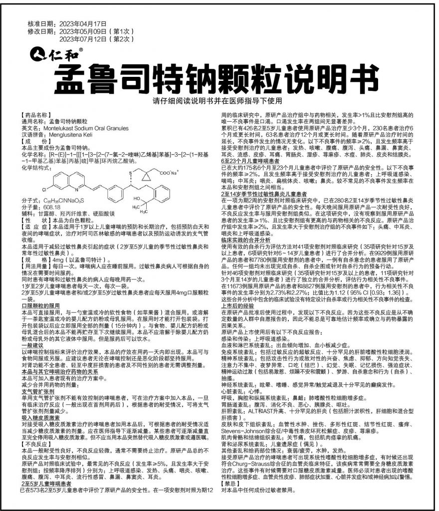 本品適用于1歲以上兒童哮喘的預防和長期治療,包括預防白天和夜間的哮喘癥狀,治療對阿司匹林敏感的哮喘患者以及預防運動誘發的支氣管收縮。 本品適用于減輕過敏性鼻炎引起的癥狀(2歲至5歲兒童的季節性過敏性鼻炎和常年性過敏性鼻炎)。