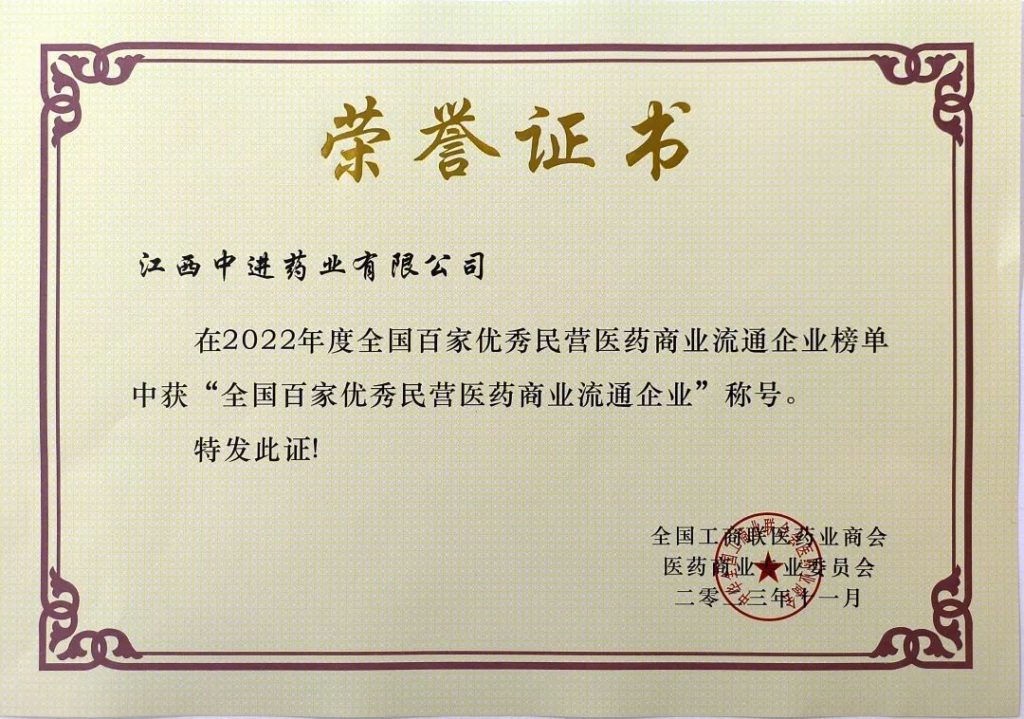 中進(jìn)藥業(yè)榮獲全國(guó)工商聯(lián)醫(yī)藥業(yè)商會(huì)“全國(guó)百家優(yōu)秀民營(yíng)醫(yī)藥商業(yè)流通企業(yè)”稱號(hào)